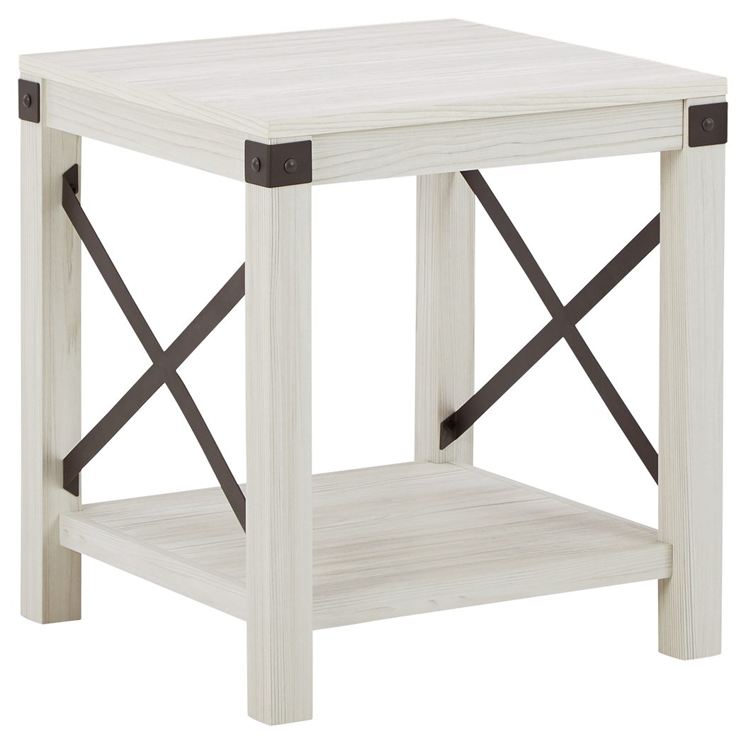 Entertain with ease with this casual, contemporary end table. Designed for the modern tastemaker, the minimalist design wows with crossbuck metal accents and a laminated surface with a whitewashed effect. An open display shelf provides ample space for books and baskets, or for showcasing your special decor accessories.
