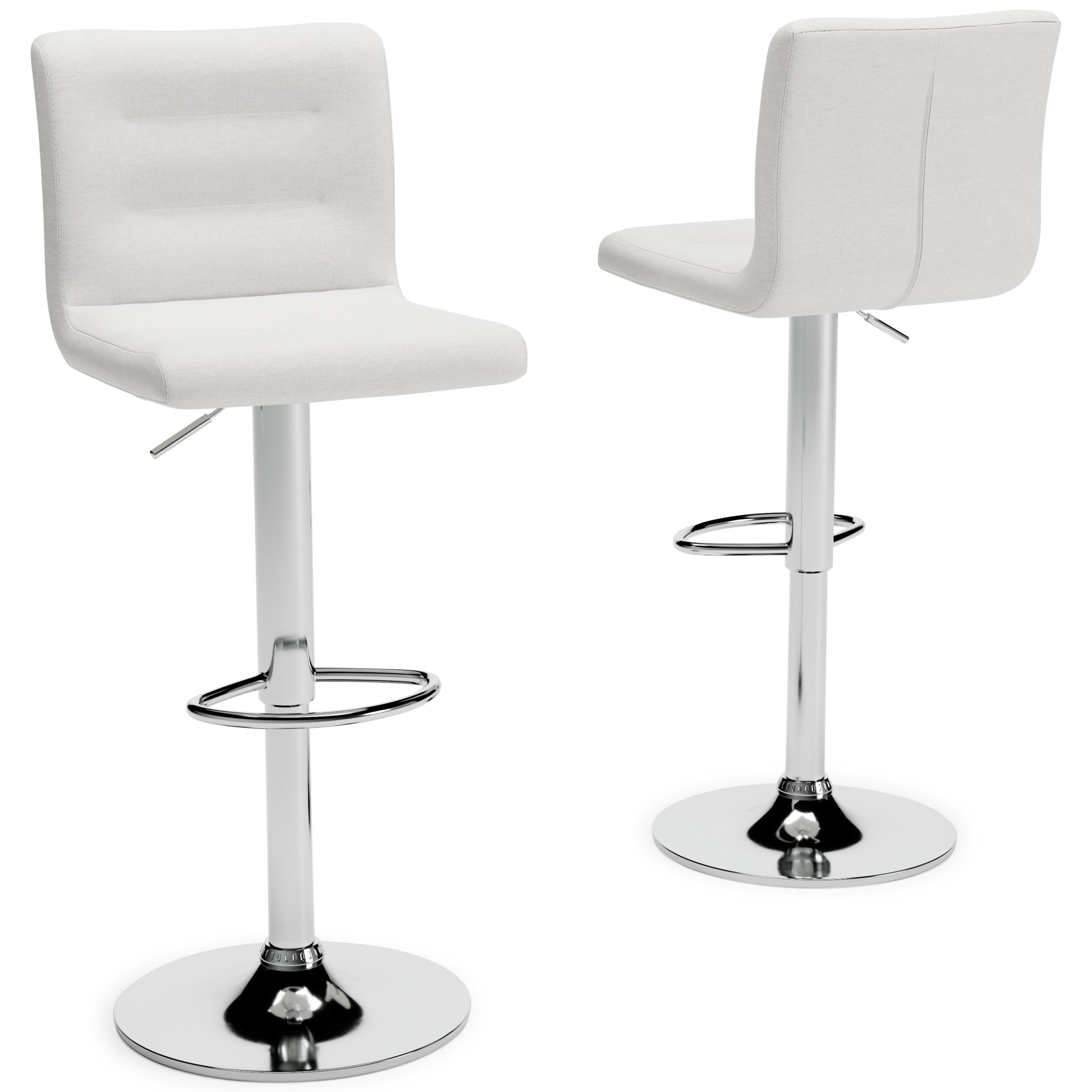 Have a taste for highly contemporary style? You’re sure to find this posh and polished bar stool something to savor. Crafted with a sturdy steel frame beautified with a brilliant chrome-tone finish, this designer bar stool caters to your comfort with an adjustable height feature and swivel pedestal base. The cushioned seat and backrest are covered in a feel-good stone color upholstery with channeled details that enhance its modern appeal.
