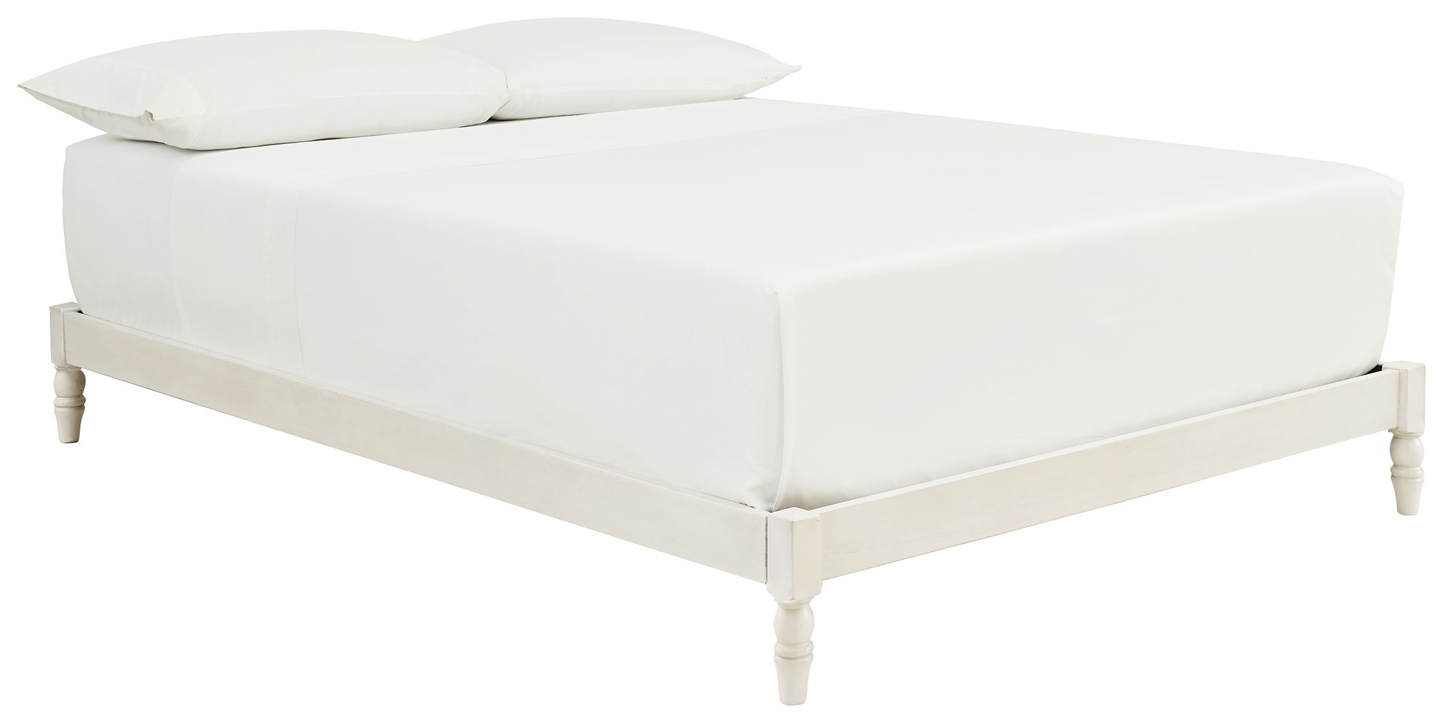 Simple living and streamlined design come together in one exceptional piece with this platform bed. Constructed with a solid wood frame finished in an elegant vintage white, the sturdy slats support your mattress without the expense of a foundation or box spring.